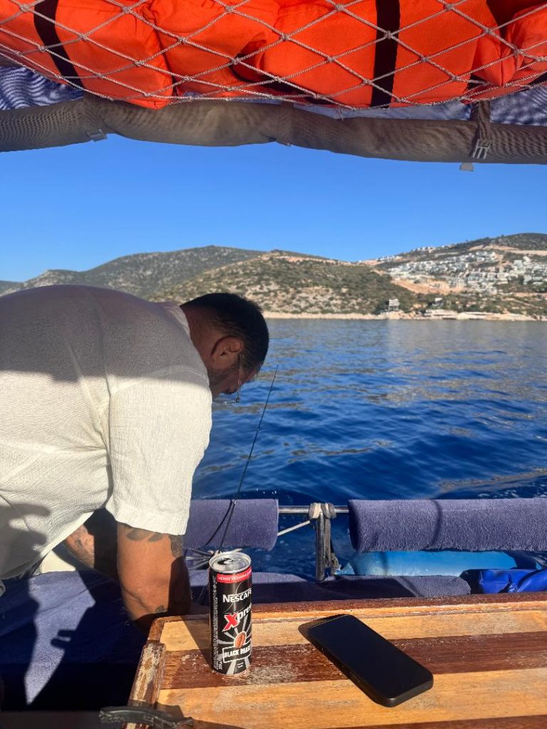For three hours, it was pure toil under the very warm Turkish sun. The rods remained stubbornly still, the only sound the hum of the engine and the water slapping the hull. The initial excitement began to wane, replaced by grim determination. A couple of Turtles surfaced near the boat. I saw one in the harbour, too, the size of bin lids. It’s always nice to see these lovely creatures.