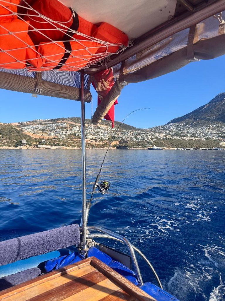 The strategies were a classic Kalkan morning troll and some jigging. We left the picturesque Kalkan harbour and began working the lures just minutes out from the groyne. The aim was to cover ground, searching the reefs and drop-offs around the islands and reefs that dot this stunning coastline. I had envisioned a leisurely morning, letting the boat do the work while the lures did their magic with my feet up.