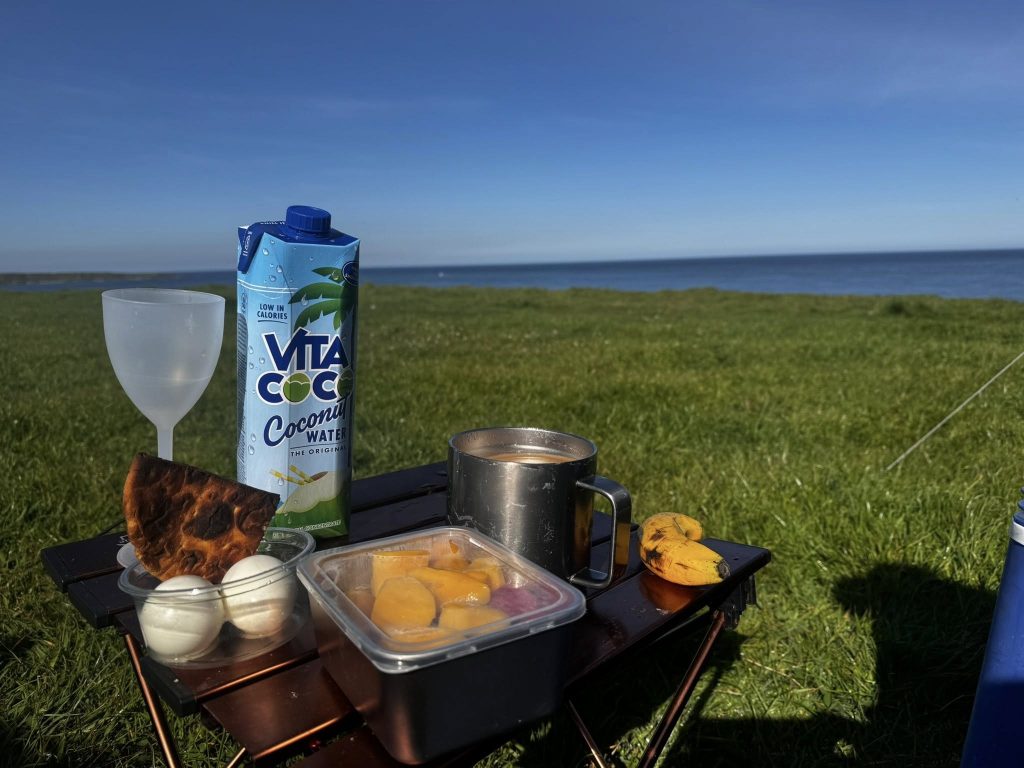 Sheep noise and the hot sun put an end to a good night’s rest – breakfast it is then: